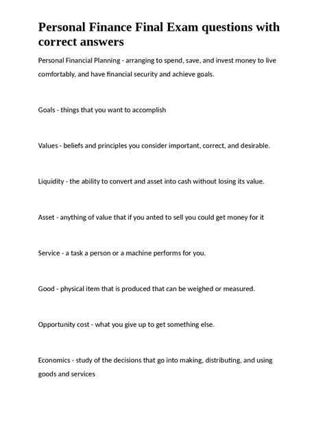 Read Online Personal Finance Final Exam Answers Epub
