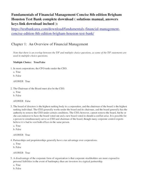 Read Financial Management Fundamentals Brigham Houston Answer Key Epub